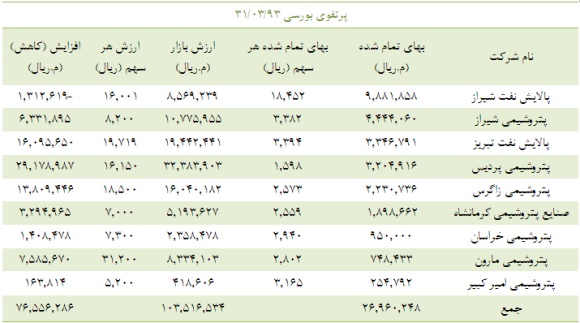 *ارزش بازار سهام شرکت ها بر اساس قیمت روز هر سهم در تاریخ 16/4/93 محاسبه شده است.