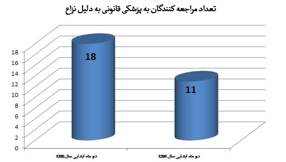 به گزارش انتخاب، از کل مراجعین به دلیل نزاع در دو ماه اول امسال 11 هزار و 746 نفر مرد و 6 هزار و 243 نفر زن بوده اند.همچنین در این گزارش آمده است در اردیبهشت ماه امسال تعداد مراجعین به دلیل نزاع به مراکز پزشکی قانونی استان با رشد 8.6 درصدی به 10هزار و 457 نفر رسیده است.
