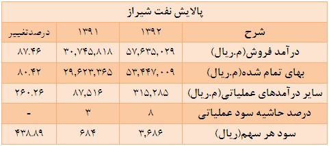*همانطور که پیداست شرکت پالایش نفت شیراز با رشد 438 درصدی سود هر سهم سال 92 رکود بالاترین تعدیل سود را در میان شرکت های پالایشی داراست.