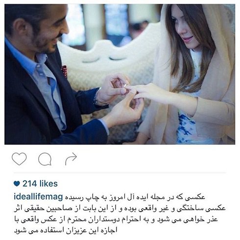 ظاهرا مجله ایده آل این تصویر منتشر شده از مراسمعروسیرضا قوچان نژاد را با انجام تمهیدات فتوشاپی و به قول قدیمی ها با اندکی جرح و تعدیل به طوری که دیگر چیزی از عکس باقی نمانده به جز یک خاطره به چاپ رسانده است! که ساره بیات در اقدامی روشنگرانه تصویر واقعی را به این شکل منتشر کردند!