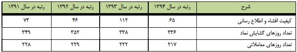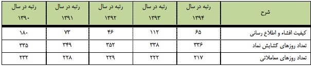 در سال 94 با ارائه و افشا و انتشار صحيح و بهموقع اطلاعات از طريق سازمان بورس اوراق بهادار به سهامداران و بازار سـرمايه توانسـتيم رتبه كيفيت افشاي اطلاعرسانی را از 112 به 65 كاهش دهيم كه اين نشاندهنده اهميت موضوع اطلاعرسانی بهموقع و صـحيح بـراي هیئتمدیره در مقابل بازار سرمايه و تصميم گيران در اين بازار میباشد.