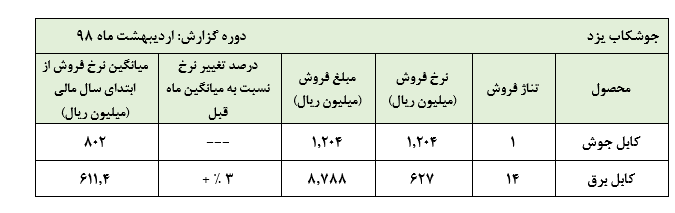 به گزارش واحد تحقیق و مطالعات بورس نیوز، پس از شناسایی و تحقق فروش 110،882میلیون ریالی شرکت جوشکاب یزد در 6 ماهه نخست سال مالی 1398، عملکرد فروردین ماه و اردیبهشت ماه این شرکت چنگی به دل نزد. شناسایی تنها 9.992 میلیون ریال فروش کایل جوش و کابل برق در عملکرد اردیبهشت ماه این شرکت نشان از افت تولید و فروش این شرکت در سال جاری دارد.