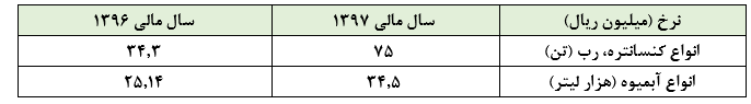 بخش عمده افزایش سودآوری این شرکت مربوط به افزایش نرخهای محصولات اصلی نظیر انواع کنسانتره، رب و به ویژه آبمیوه بوده که این موضوع را میتوان در جدول ذیل نیز ملاحظه کرد.