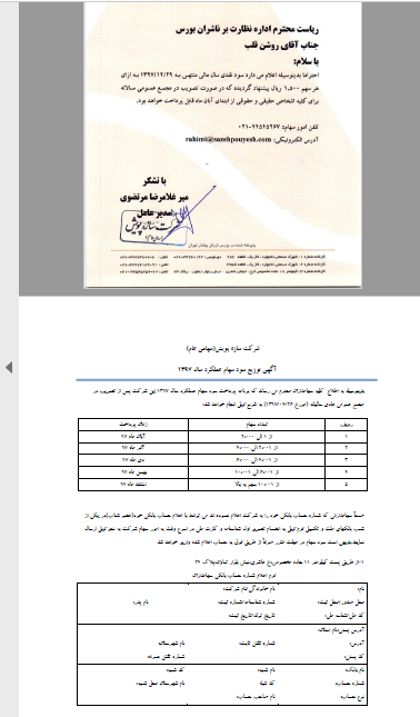 شرکت سازه پویش (سهامی عام) برنامه زمانبندی پرداخت سود سهام عملکرد سال 1397 را تعیین کرد.
