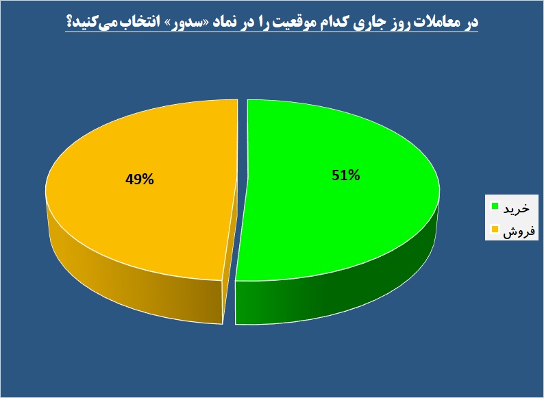 در نظرسنجی روز گذشته آبسیم پلاس در خصوص معاملات «سدور»، ۵۱ درصد از شرکت کنندگان در نظرسنجی گزینه خرید را تیک زدند و ۴۹ درصد دیگر موقعیت فروش را انتخاب کردند.