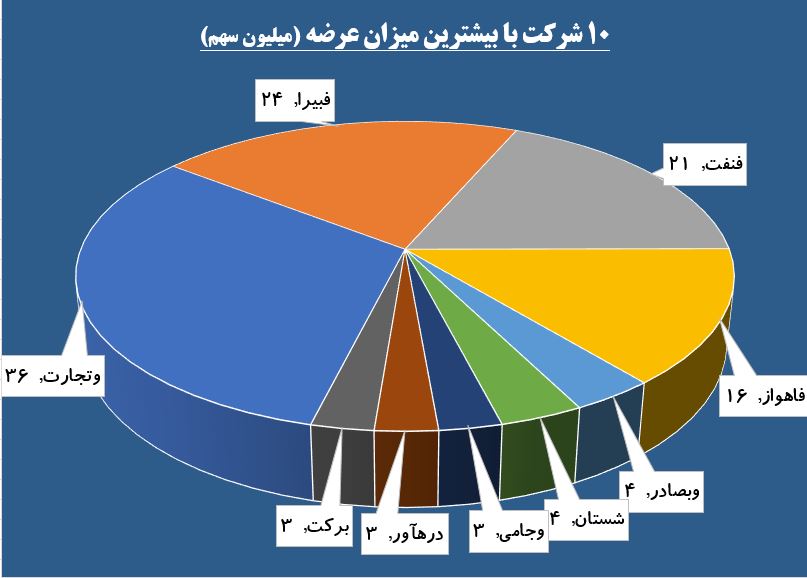 در حال حاضر، نماد بانکی «وتجارت» با بیشترین میزان عرضه مواجه شده و در این لیست نام نماد های «فبیرا» و «فنفت» نیز به چشم می خورد.