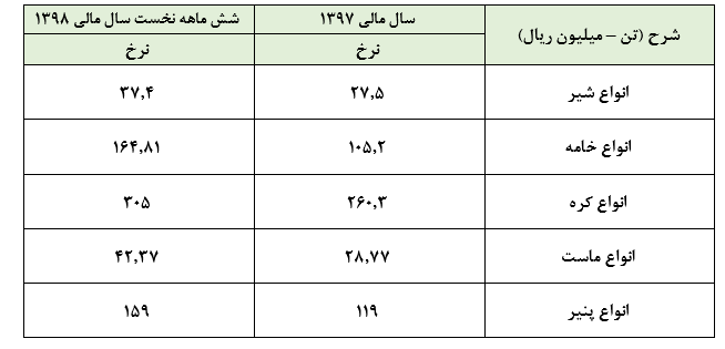 از موارد قابل توجه صورتهای مالی ۶ ماهه حسابرسی شده این شرکت در مقایسه با گزارش مشابه این شرکت در سال مالی ۱۳۹۷، میتوان به کاهش چشمگیر و در حدود ۲.۱۰۰ تنی فروش انواع محصولات صادراتی و ۵۷۰۰ تنی محصولات داخلی شرکت اشاره داشت. علیرغم این کاهش معنادار فروش محصولات میتوان به افزایش معنادار نرخهای فروش شیر و خامه در مقایسه با مدت مشابه سال قبل و حتی میانگین نرخهای فروش سال گذشته اشاره داشت.