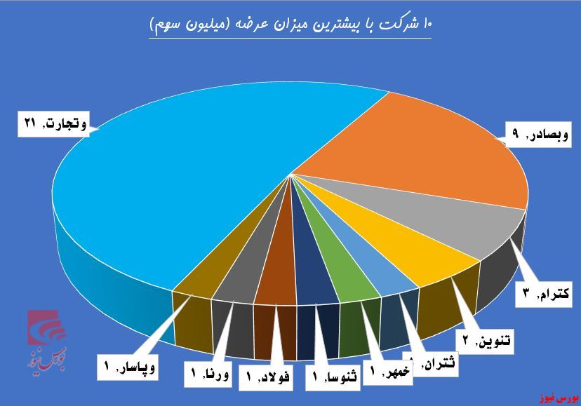 از طرف دیگر، «وتجارت» پرعرضهترین سهم بازارسرمایه تا به این لحظه بود و «وبصادر» و «کترام» نیز در کنار هم ایستادند.