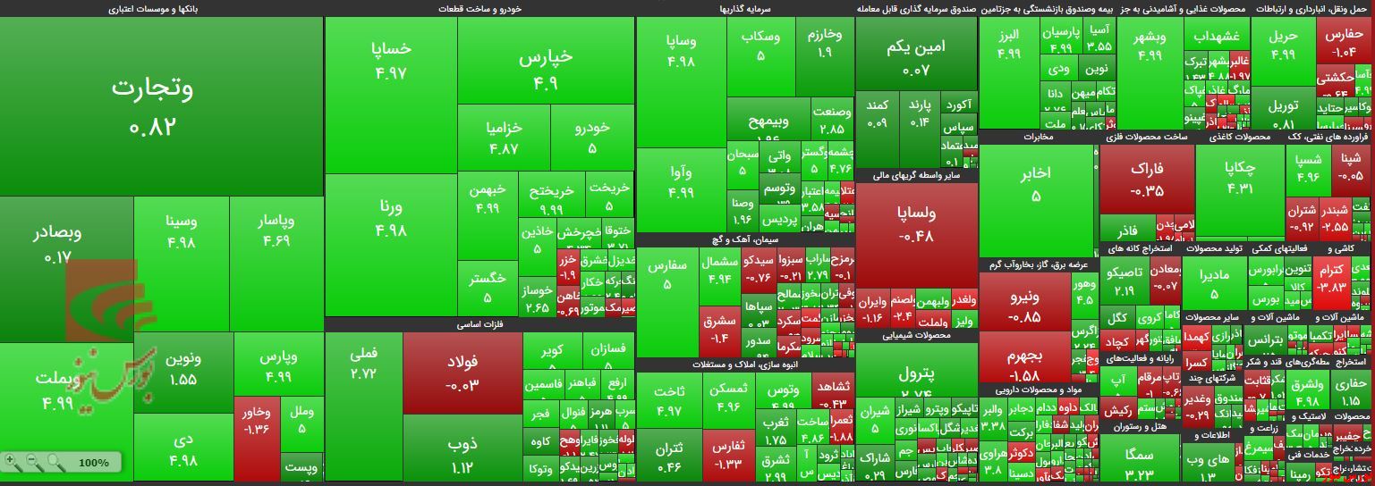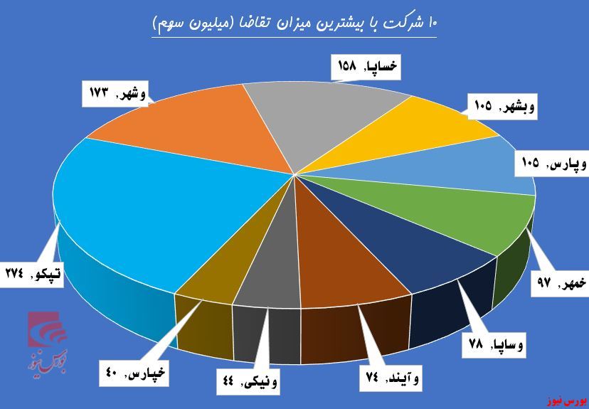 همچنین باید اشاره داشت که تقاضای مطلوبی در معاملات «تپکو» مشاهده میشود. پس از این سهم، «وشهر» و «خساپا» جای گرفتهاند.
