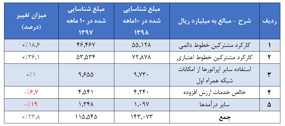 برپایه این گزارش، شاهد ادامه رشد درآمد‌های شرکت از دو محل کارکرد مشترکین اعتباری و مشترکین دائمی شرکت هستیم و در نمودار زیر روند کسب درآمد شرکت از این دو بخش را که بخش عمده‌ای از درآمد و سود عملیاتی کسب شده را در بر می‌گیرند، مشاهده می‌نماییم.