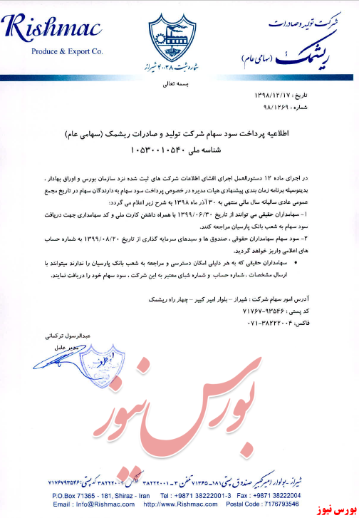 شرکت تولید و صادرات ریشمک به سهامداران سود پرداخت خواهد کرد.