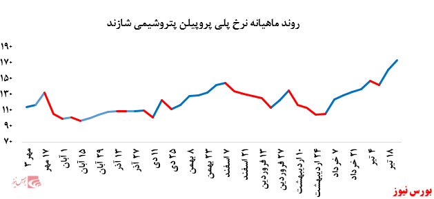 در ادامه جدول معاملات محصولات اصلی پتروشیمی شازند و همچنین نمودار ماههای اخیر قیمتی محصول پلی پروپیلن این شرکت ارائه شده است.