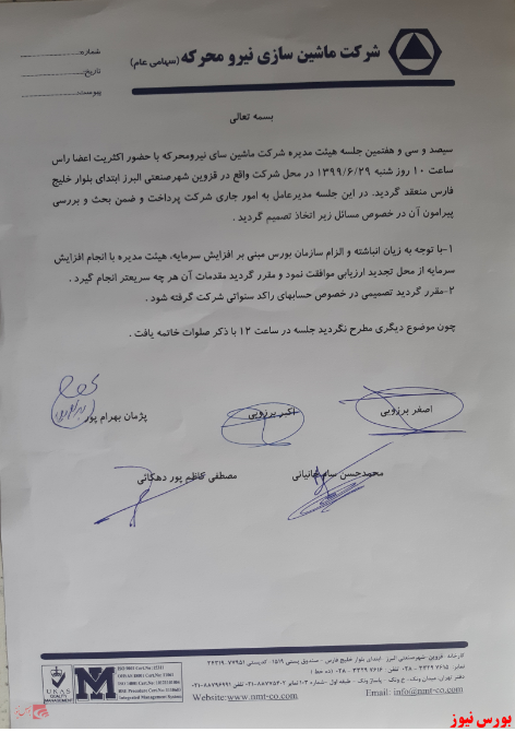 به گزارش بورس نیوز، شرکت ماشین سازی نیرومحرکه از افزایش سرمایه خبر داد.