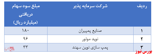 سود ناشی از درآمد سود سهام محقق شده به مبلغ ۳۶۳ میلیارد ریال شناسایی شده و شرکتهای اصلی زیرمجموعه غیربورسی که بخش اصلی سود سهام را محقق کرده اند در جدول زیر ارائه شده است:
