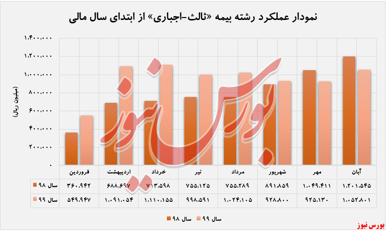نمودار عملکرد رشته بیمه «ثالث-اجباری» از ابتدای سال مالی تا پایان آبان ماه