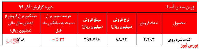 همانگونه که در جدول نیز مشاهده بود، کاهش چشمگیر ۳۲درصدی نرخهای فروش کنستانتره روی در مقایسه با آبانماه سال جاری مهمترین نکته گزارش منتشر شده این شرکت در سامانه کدال است.