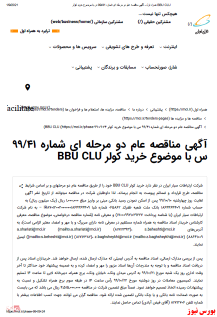 به گزارش بورس نیوز، شرکت کارخانجات مخابراتی ایران در مناقصه عام دو مرحلهای با موضوع خرید کولر BBU CLU شرکت کرد.