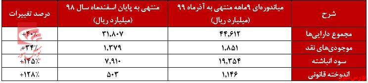 صورت وضعیت مالی میاندورهای ۹ ماهه منتهی به پایان آذرماه ۹۹