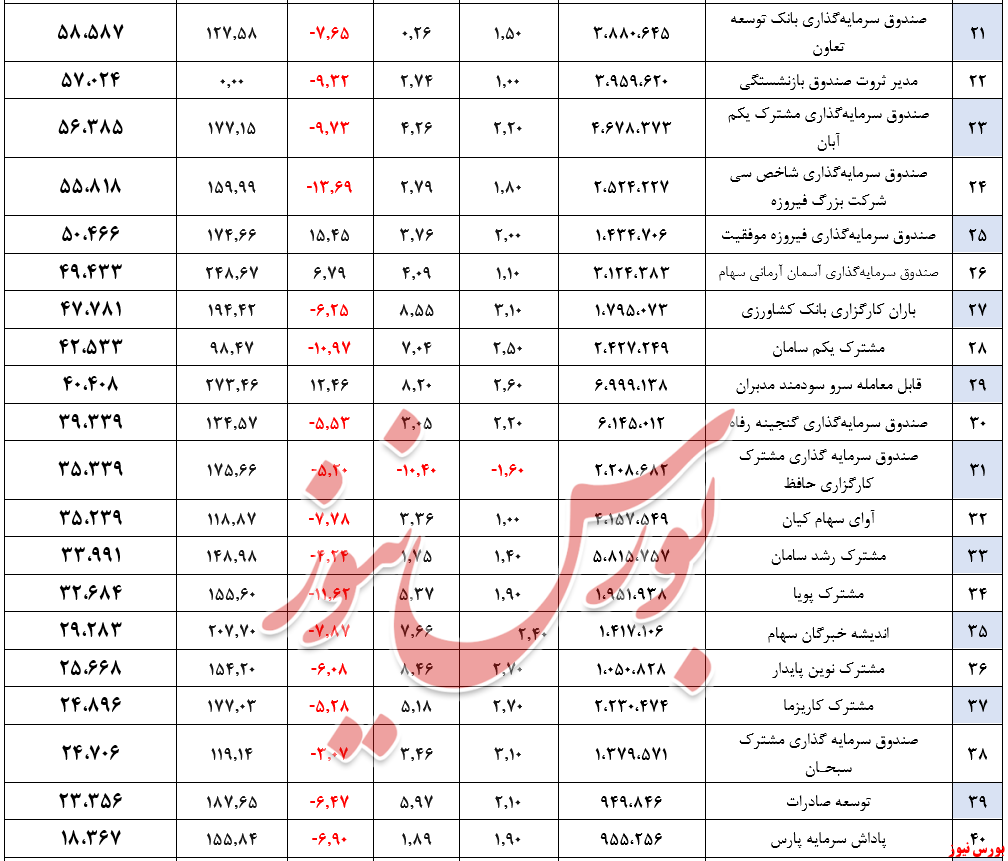 گزارش هفتگی صندوق‌های سرمایه گذاری در سهام؛