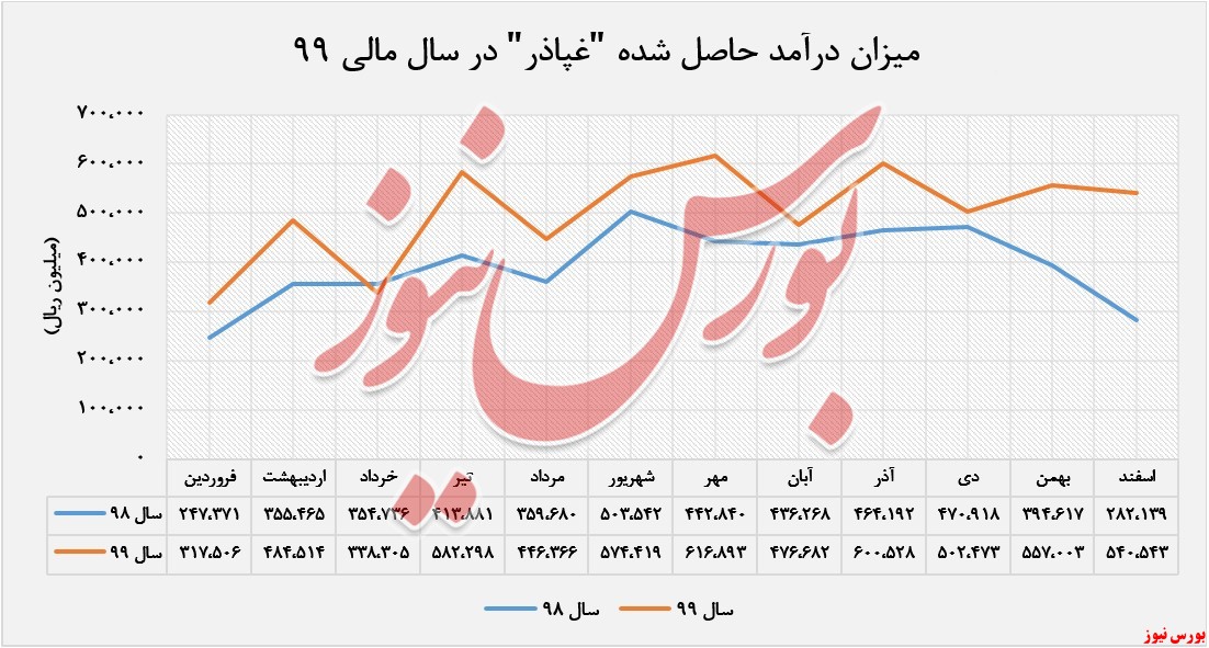 درآمدهای عملیاتی غپاذر در اسفندماه ۹۹