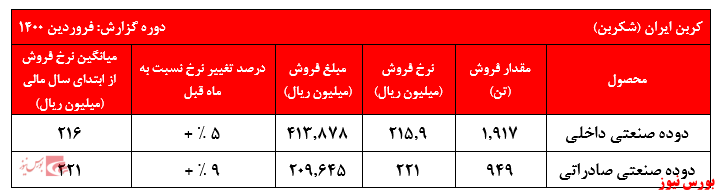 ثبت بالاترین فروش ماهیانه "شکربن"