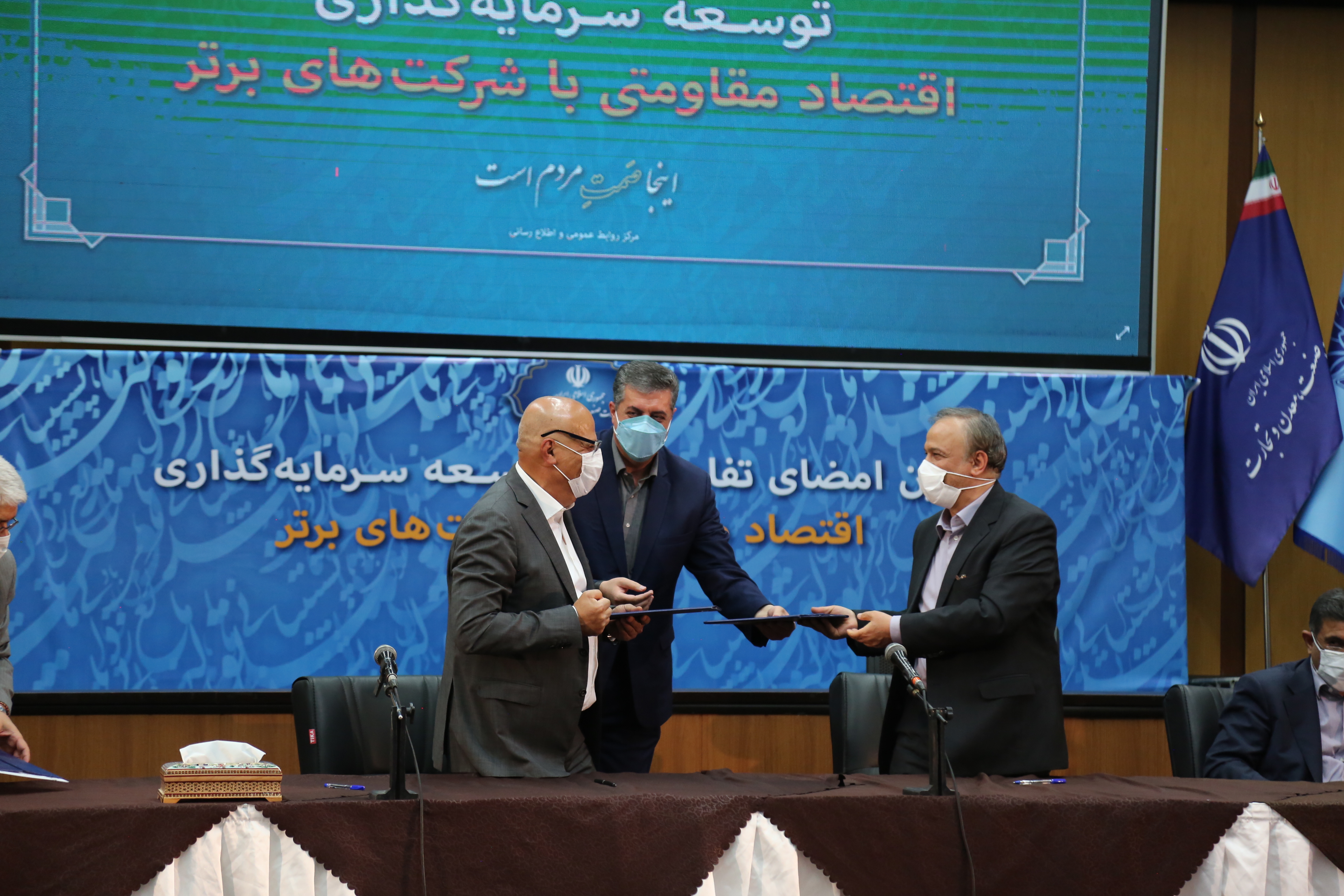با حضور وزیر صمت، استانداران، نمایندگان مجلس و مسئولان دستگاه قضایی و فعالان بخش خصوصی در دومین مرحله از طرح اقتصاد مقاومتی با شرکت های برتر ۳۰۰ هزار میلیارد تومان تفاهم نامه سرمایه گذاری میان وزارت صمت و پنج شرکت گروه صنعتی زر، شرکتهای ملی صنایع مس ایران، شرکت معدنی و صنعتی گلگهر، شرکت ایران رادیاتور و شرکت سنگ آهن گهر زمین در ۱۰۱ موضوع و طرح با هدف توسعه سرمایه گذاری و استفاده از توان شرکت ها به امضا رسید.