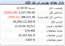 شاخص هم وزن با افت ۴۹۹۹ واحدی به عدد ۳۸۳.۲۱۷ رسید.