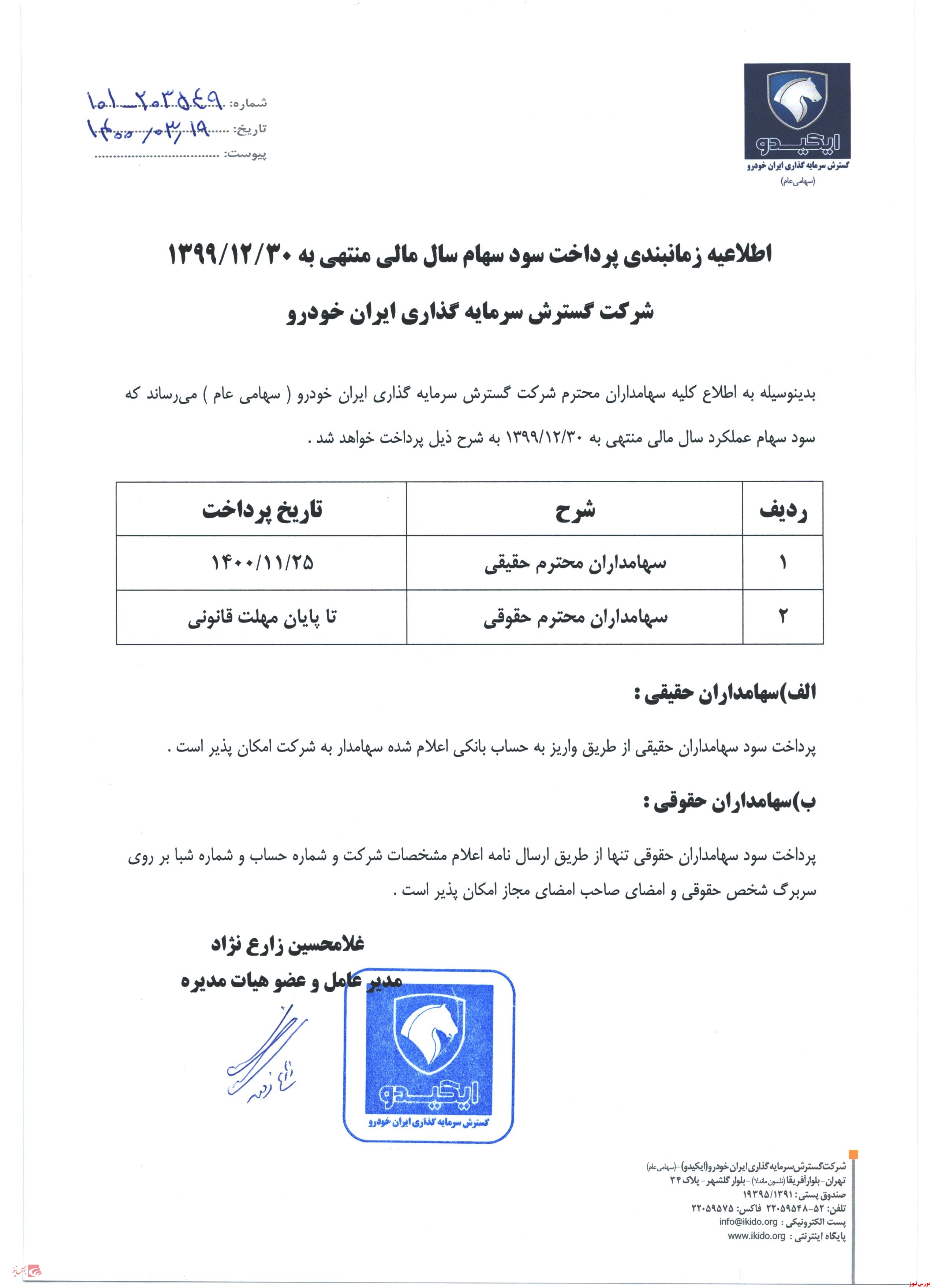 شرکت گسترش سرمایه گذاری ایران خودرو زمان پرداخت سود را مشخص کرد.
