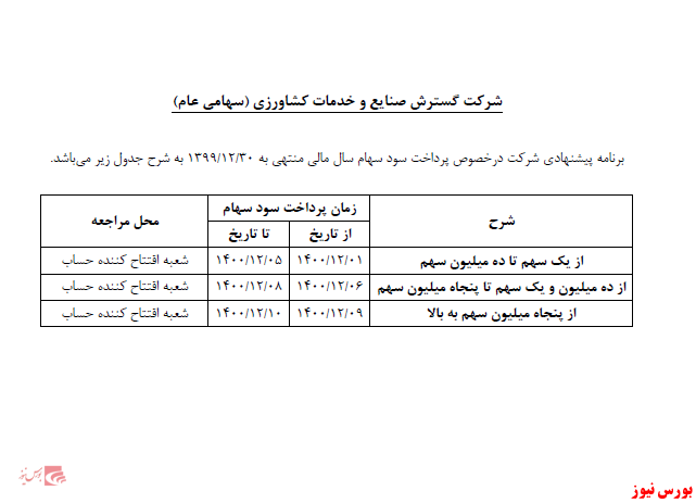 شرکت گسترش صنایع و خدمات کشاورزی از پرداخت سود خبر داد.