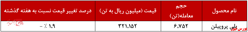 ارزش معاملات انواع پلی پروپلینهای تولیدی شرکت برابر با ۲۰ هزار و ۲۷۷ میلیارد تومان بوده است.