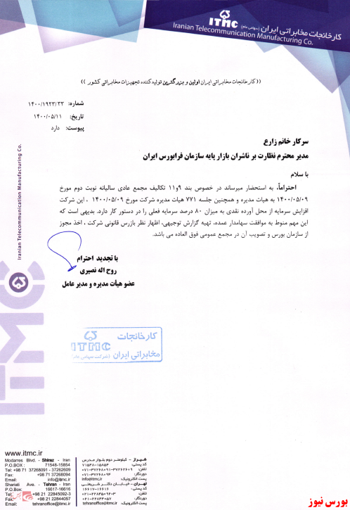 هیات مدیره شرکت کارخانجات مخابراتی ایران انجام اقزایش سرمایه آورده نقدی را مصوب کرد.