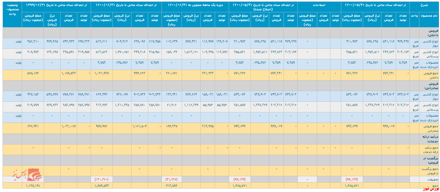 شرکت کاشی پارس گزارش فعالیت ماهانه یک ماهه منتهی به ۱۴۰۰/۰۶/۳۱ را منتشر کرد.