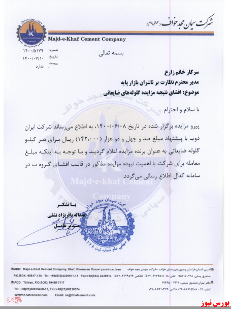 شرکت سیمان خواف از فروش گلوله‌های فولادی خبر داد.