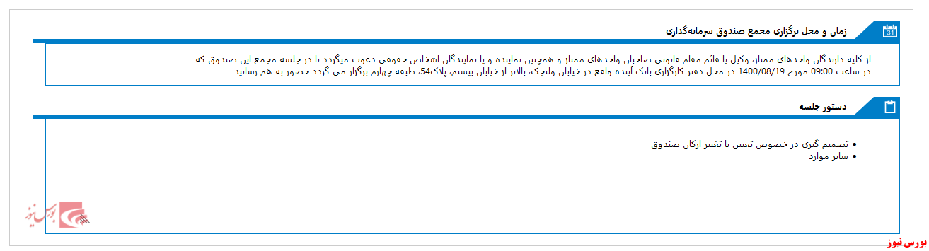 صندوق سرمایه گذاری گنجینه آینده روشن به مجمع می رود