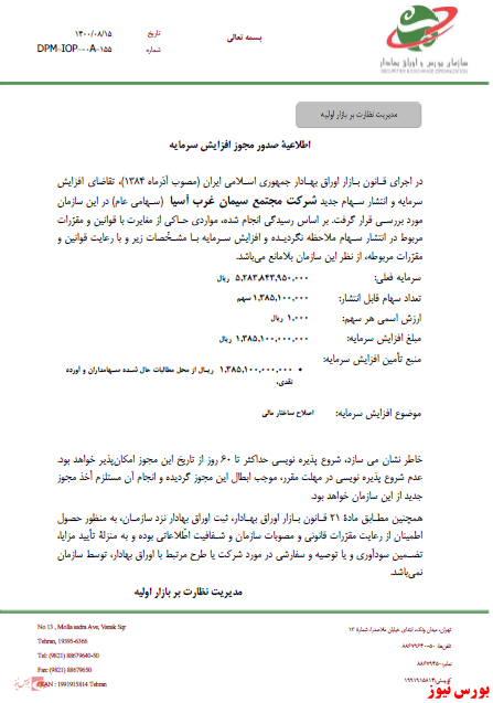 با اعلام شرکت مجتمع سیمان غرب آسیا؛