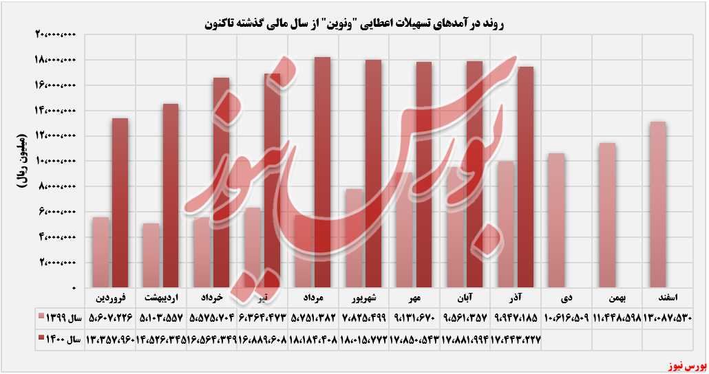 مقدار درآمد تسهیلات اعطایی "ونوین"