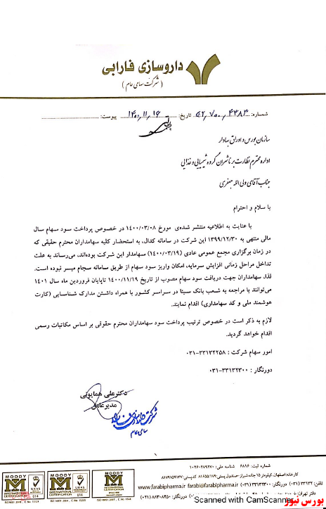شرکت داروسازی فارابی از زمانبندی پرداخت سود به سهامداران خبر داد.
