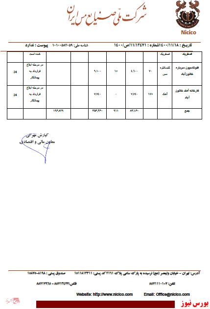 بر این اساس، این شرکت اعلام کرد، تفاهم نامه عملیات اجرایی ۷ پروژه بزرگ صنعتی و معدنی مس به مبلغ سرمایه گذاری ۳۵۶.۴۶۰ میلیارد ریال امضا شده است.