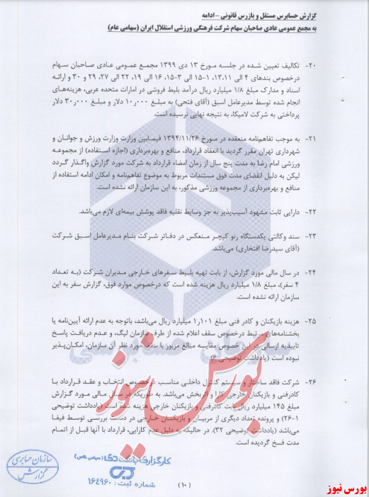 اظهارنظر حسابرس در خصوص پرسپولیس