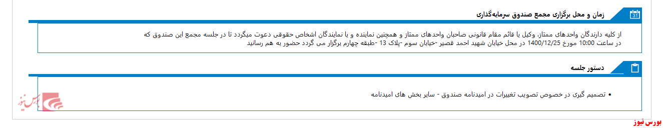 مجمع شرکت صندوق سرمایه گذاری مشترک افق در تاریخ ۱۴۰۰/۱۲/۲۵ برگزار می‌شود.