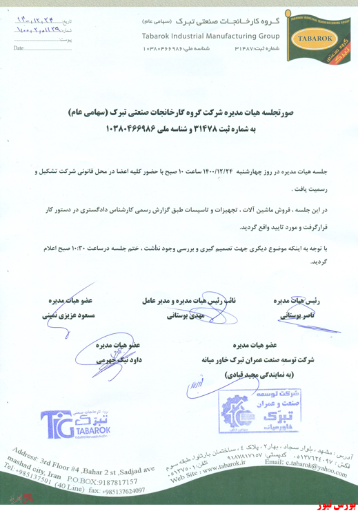 با اعلام شرکت گروه کارخانجات صنعتی تبرک؛