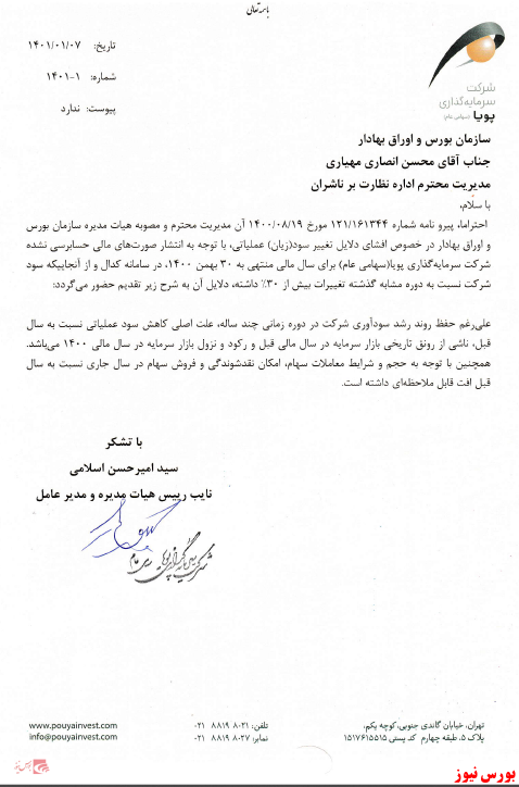 شرکت سرمایه گذاری پویا از دلایل تغییر سود و زیان خبر داد.