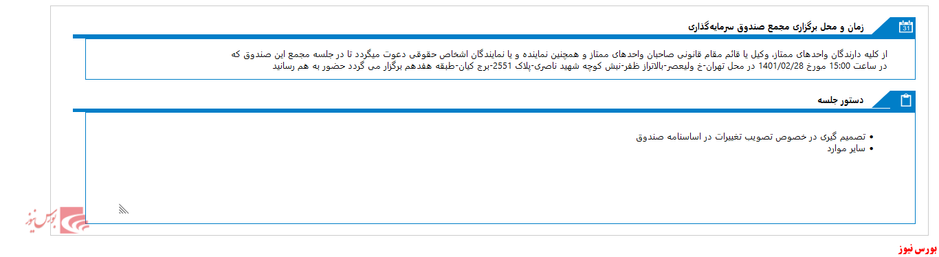 به گزارش بورس نیوز، مجمع صندوق سرمایه گذاری سرو سودمند مدبران در تاریخ ۱۴۰۱/۰۲/۳۱ برگزار می‌شود.