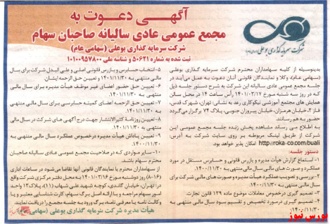 مجمع عمومی فوق العاده شرکت سرمایه گذاری بوعلی در تاریخ ۱۴۰۱/۰۳/۱۷ برگزار میشود.