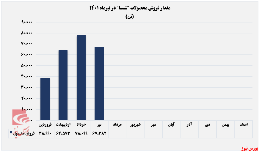 "شسپا" در تیرماه ۶۷ هزار و ۳۸۲ تن از محصولات تولیدی خود را در بازار داخل و خارج از کشور فروخت و طی ۴ ماه گذشته نیز این مقدار فروش به ۲۴۹ هزار و ۴۴ تن رسید، فروش سالانه این شرکت در مقایسه با دوره مشابه ماه گذشته با کاهش ۱۴ درصدی روبهرو بود.