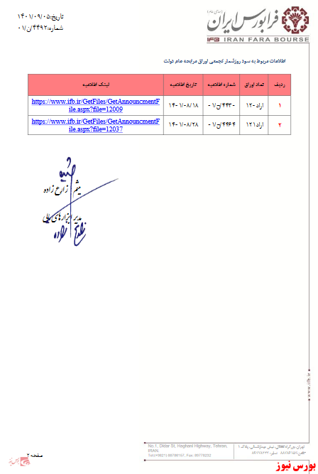 اطلاعیه مظنه گیری اوراق مرابحه عام دولت