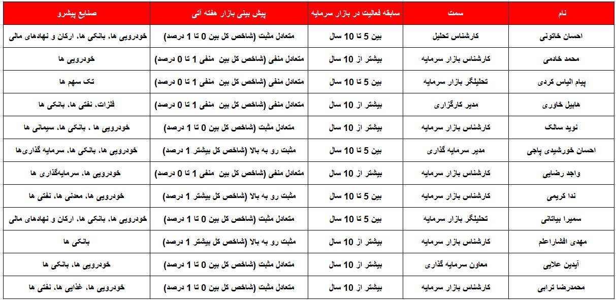احسان خورشیدی: به دلیل ورود نقدینگی و افزایش ارزش معالات ، همچنین تثبیت محرکهای بازار همچون دلار و .... پیشبینی میشود کلیت بازار رو به بالا باشد