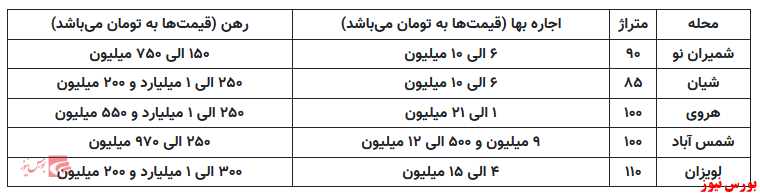 در ادامه قیمتهای اجاره مسکن در این محله را مشاهده می کنید.