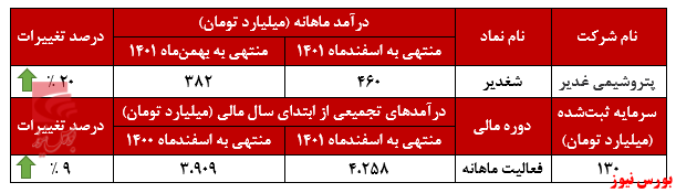 شرکت پتروشیمی غدیر میزان درآمدی که رقم زد ۳۳ درصد بیشتر از درآمدی بوده که در میانگین ۱۱ ماه سال ۱۴۰۱ به‌دست‌آمده است.
