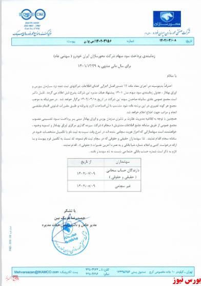شرکت صنعتی محوزسازان ایران خودرو از زمانبندی پرداخت سود به سهامداران خبر داد.